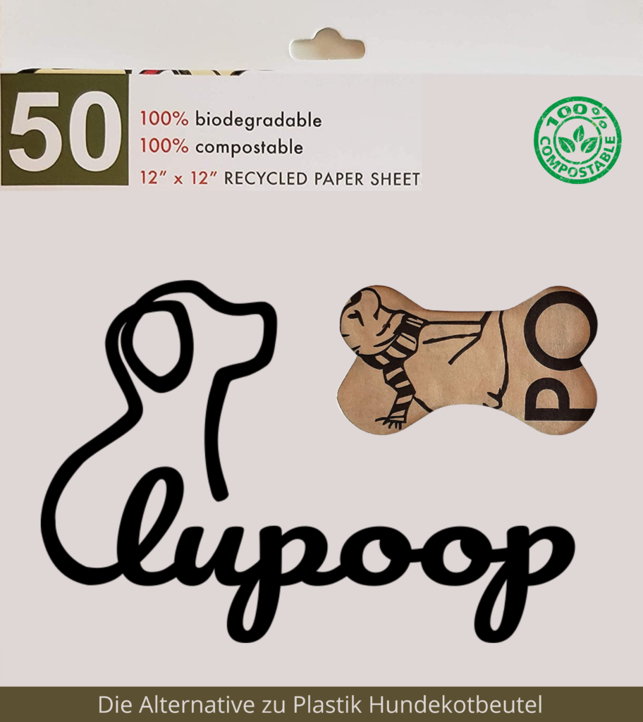 Lupoop ist eine recycelte, chlorfrei gebleichte Papieralternative zu Einweg-Plastikbeuteln für Hundekot. Unsere Blätter sind zu 100 % biologisch abbaubar, zu 100 % kompostierbar und werden mit erneuerbarer Energie hergestellt. Unsere fluorchemiefreie, öl- und fettbeständige Beschichtung wird während des Trocknungsprozesses des Zellstoffs auf natürliche Weise hergestellt, um sicherzustellen, dass das Kuscheltier Ihres Hundes im Papier bleibt und nicht auf Ihrer Hand!